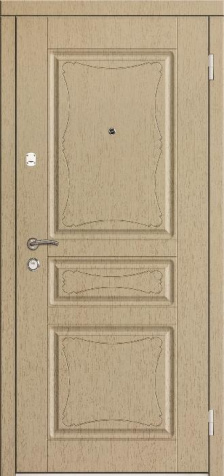 Фото «Железная дверь орех модерн с хром-вставками внутри классическая арка №324»