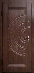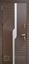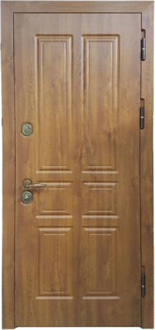 Фото «Металлическая дверь венге с квадратными филёнками и центральной планкой №360»