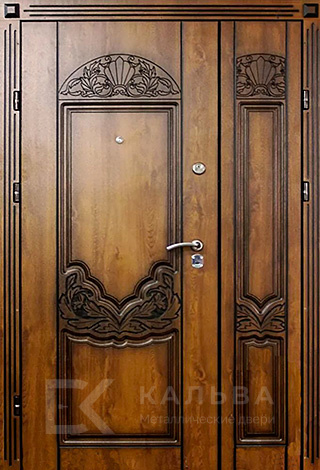 Фото «Металлическая полуторная дверь для квартиры орех с фрезеровкой №100»