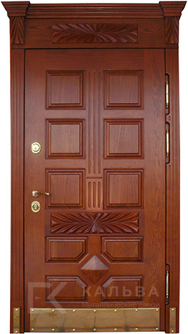 Фото «Железная двустворчатая дверь шоколадная с коваными ветвями и львиным молотком №112»