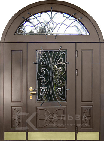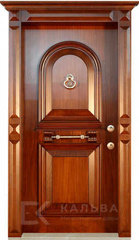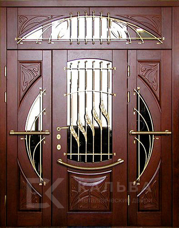 Фото «Металлическая двустворчатая дверь с МДФ и круглым остеклением №115»