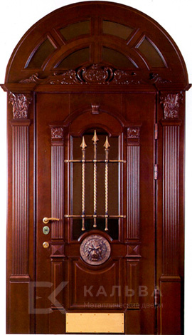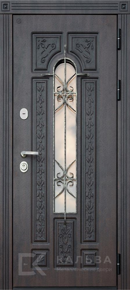 Фото «Железная тёмная дверь с матовым стеклом и кованым узором №410»
