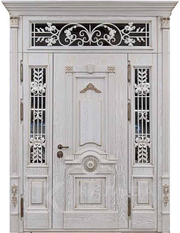 Фото «Стальная светлая с кованой фрамугой и остеклением для частного дома №415»